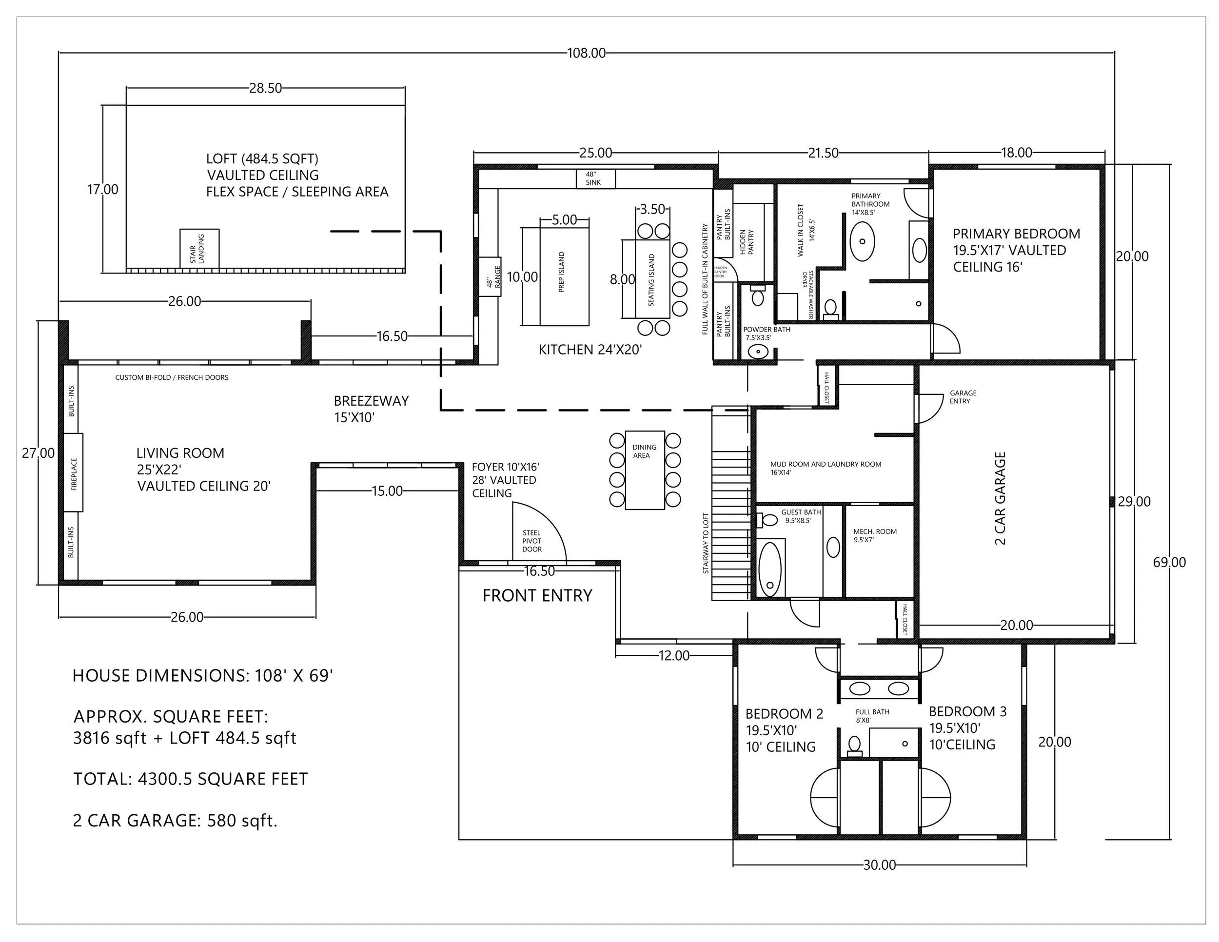 SQUARE FOOTAGE: 3816 + LOFT (484.5)